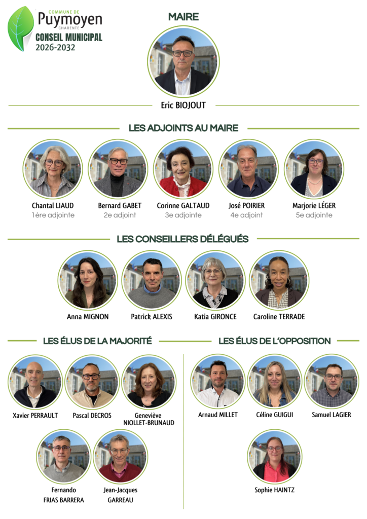 Retrouvez ci-dessous l’organigramme du conseil municipal 2026/2032
